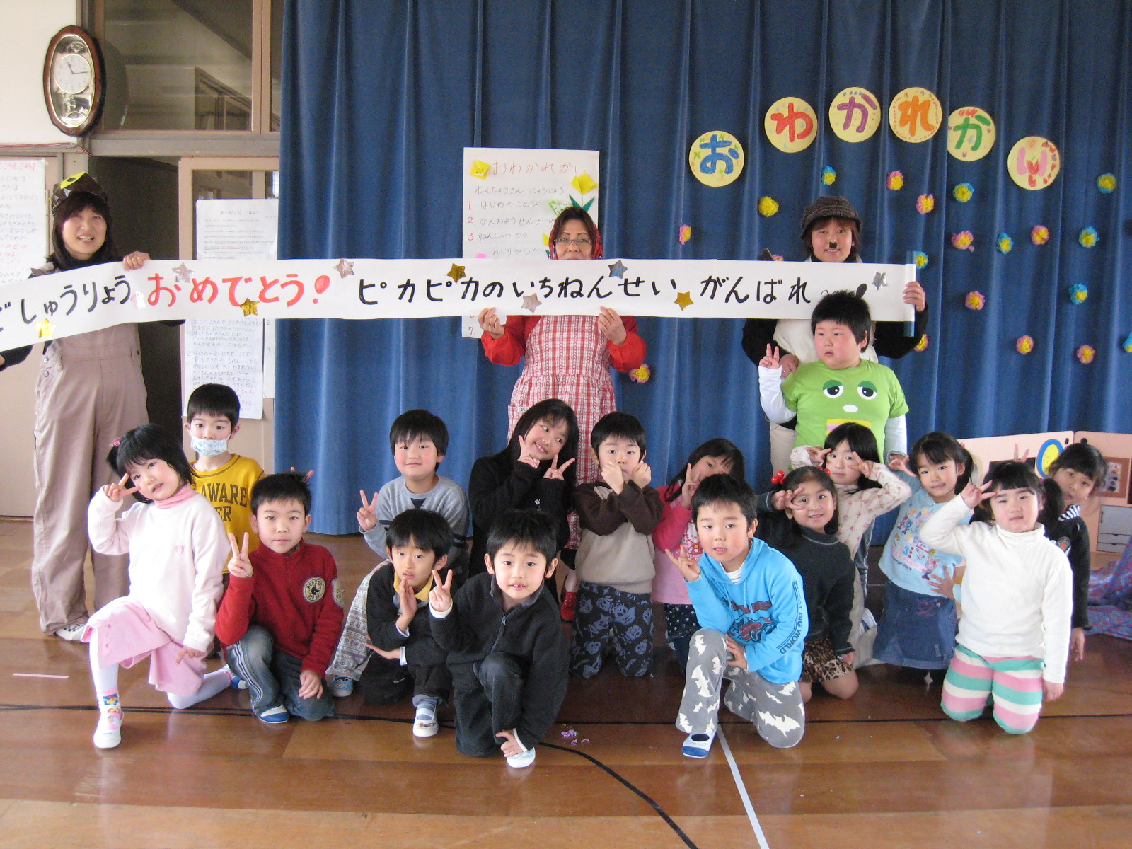 º£Æü¤ÏǯŤµ¤ó¤Î½¤Î»¼°¤Ç¤·¤¿¡££²Ç¯Á°¤Î£´·î¡£¤Þ¤À¾®¤µ¤¯¤Æ¤¢¤É¤±¤Ê¤«¤Ã¤¿»Ò¤É¤â㤬º£Æü¤Ï¤Ò¤È¤ê¤Ò¤È¤ê¤¬¤È¤Ó¤¤ê¤Î¾Ð´é¤Ç¸÷¤êµ±¤¤¤Æ¤¤¤Þ¤·¤¿¡£½é¤á¤Ë´ÛĹÀèÀ¸¤«¤é½¤Î»¾Ú½ñ¤òĺ¤¡¢°ìǯÀ¸¤Ë¤Ê¤Ã¤¿¤é´èÄ¥¤ë¤³¤È¤òƲ¡¹¤Èȯɽ¤·¤Þ¤·¤¿¡£¤½¤ì¤«¤é¤ªÊ줵¤ó¡¢¤ªÉ㤵¤ó¤«¤é²¹¤«¤¤¥á¥Ã¥»¡¼¥¸¤òĺ¤¤Þ¤·¤¿¡£ÎÞ¤ò¤³¤é¤¨¤Ê¤¬¤é²æ¤¬»Ò¤Ë£¶Ç¯´Ö¤Î»×¤¤¤òÅÁ¤¨¤Æ¤¯¤ì¤¿Êݸî¼Ô¤Î³§¤µ¤ó¤Î»Ñ¤Ë¤Þ¤¿¤Þ¤¿ÎÞ¡£ËÜÅö¤Ë´¶Æ°¤Î¤Ò¤È¤È¤¤Ç¤·¤¿¡£Ç¯¾¯¤µ¤ó¤ÎÁ÷¤ë¸ÀÍÕ¤âǯŤµ¤ó¤Î¤ªÊ̤ì¤Î¸ÀÍÕ¤â¤È¤Ã¤Æ¤â¾å¼ê¤Ç¤·¤¿¤Í¡£¤Ê¤´¤ê¤¬¿Ô¤¤Ê¤¤¤ªÊ̤ì¤ÎÆü¤Ç¤·¤¿¤¬¡¢»Ò¤É¤â㤬¤¤¤Ê¤¯¤Ê¤Ã¤¿Éô²°¤Ï¤·¡¼¤ó¤ÈÀŤޤ꤫¤¨¤Ã¤Æ¤¤¤Þ¤¹¡£¤¤Ã¤È»Ò¤É¤âã¤âº£º¢¿´¤ÎÃæ¤Ë¤Á¤ç¤Ã¤Ô¤ê·ê¤¬¶õ¤¤¤¿Íͤʵ¤»ý¤Á¤Ç¤¤¤ë¤³¤È¤Ç¤·¤ç¤¦¡£¤Ç¤â¡¢¤â¤¦¤¹¤°¤Þ¤¿°ìÊâÂç¿Í¤È¤·¤ÆÀ¸³è¤Ç¤¤ëÆü¤¬¤ä¤Ã¤Æ¤¤Þ¤¹¡£»ùƸ´Û¤Ç¸«¤Ä¤±¤¿Êõʪ¤ò¿´¤Ë¤¤¤Ã¤Ñ¤¤¤Ä¤á¤ÆÂ礤¯Â礤¯±©¤Ð¤¿¤¤¤ÆÍߤ·¤¤¤È»×¤¤¤Þ¤¹¡£´èÄ¥¤ì£±Ç¯À¸¡ªÊݸî¼Ô¤Î³§ÍÍ¡¢²¹¤«¤¤¤´»Ù±ç¤È¤´¶¨ÎϤòĺ¤ËÜÅö¤Ë¤¢¤ê¤¬¤È¤¦¤´¤¶¤¤¤Þ¤·¤¿¡£
